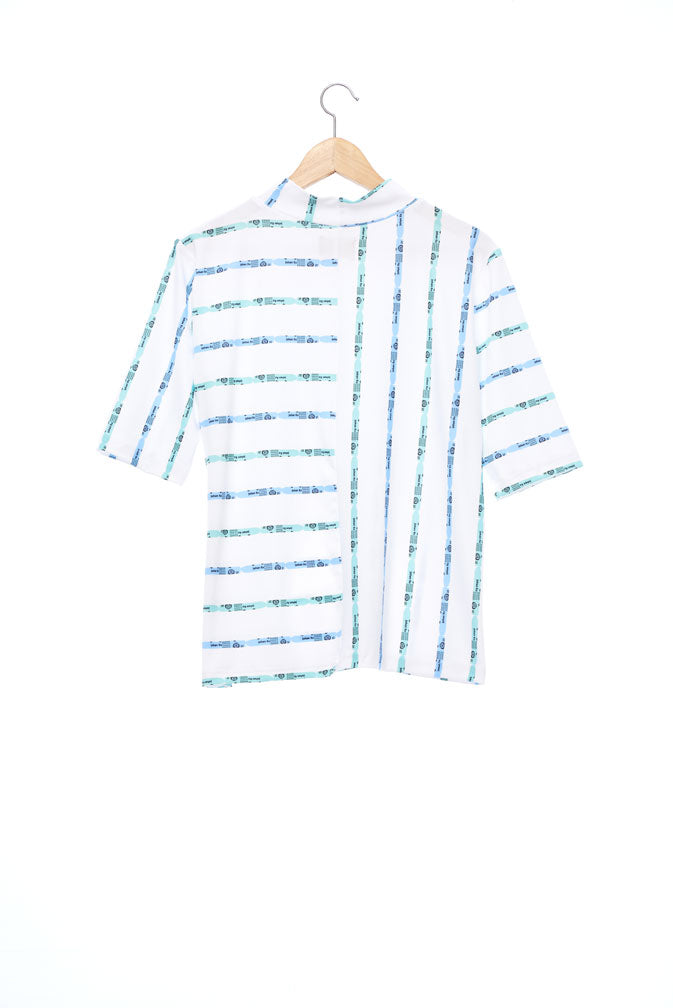 "The Painters" Collection- Crayon Stripes White Printed Elastic Jersey Short Sleeve Top